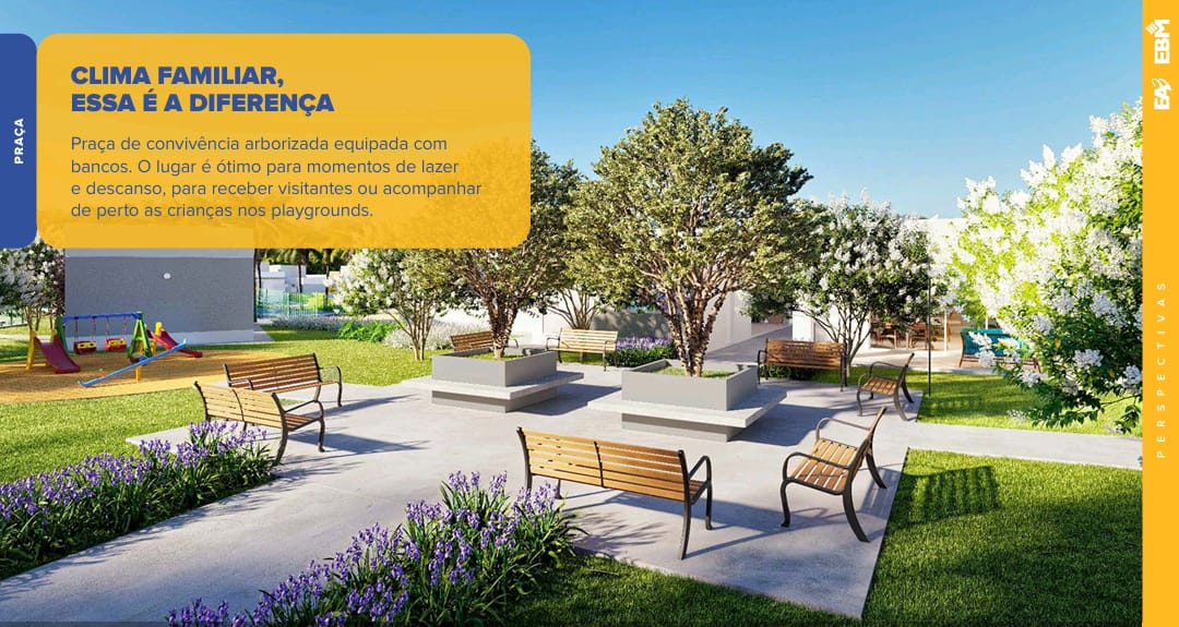 Piscinas, playground, praça, campo gramado, quadra poliesportiva, churrasqueiras, varanda gourmet, brinquedoteca, academia, salão de festas.