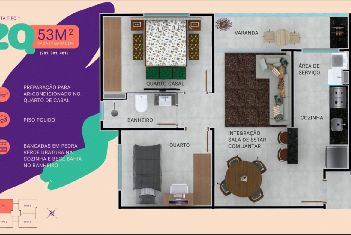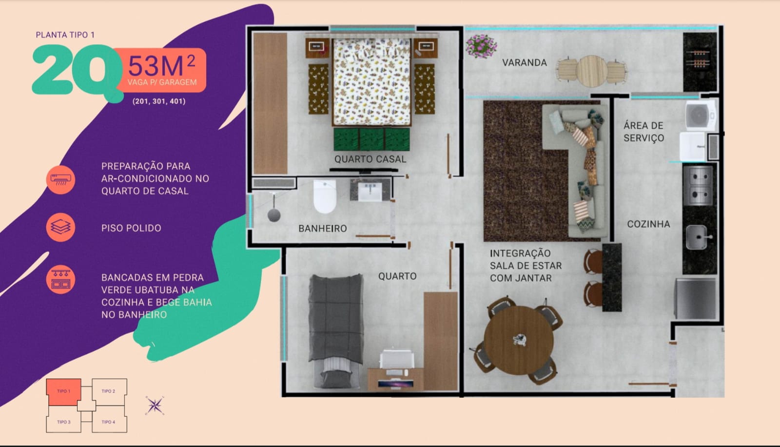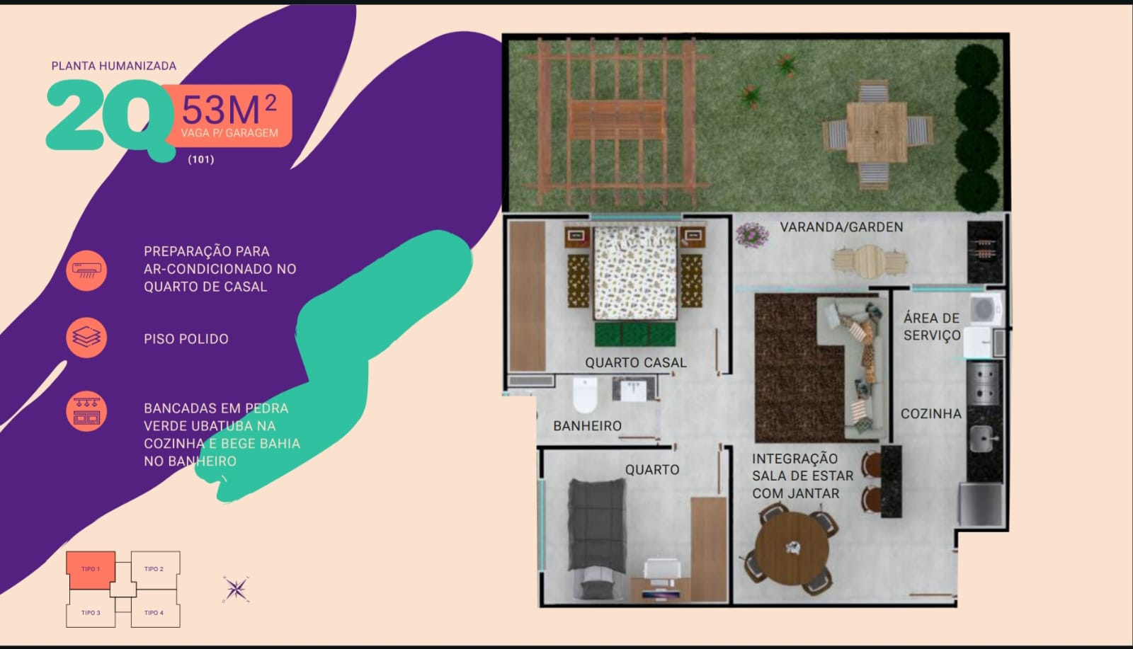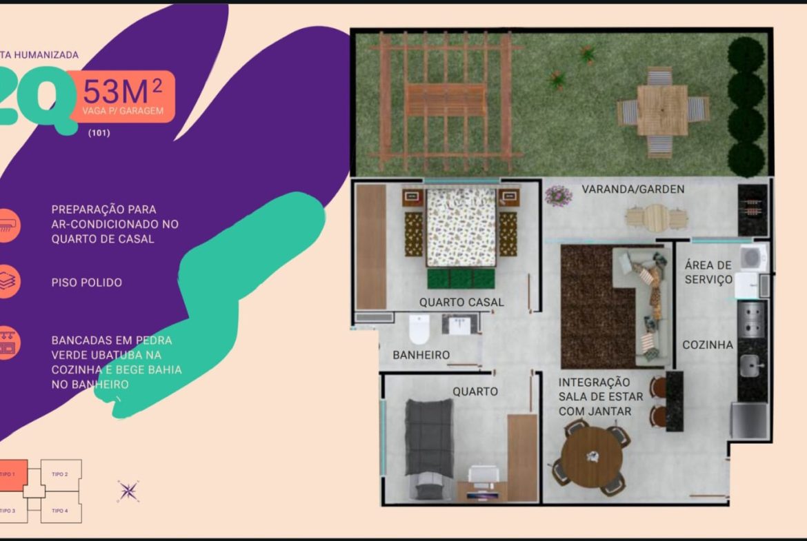 • Área Privativa 53 m²